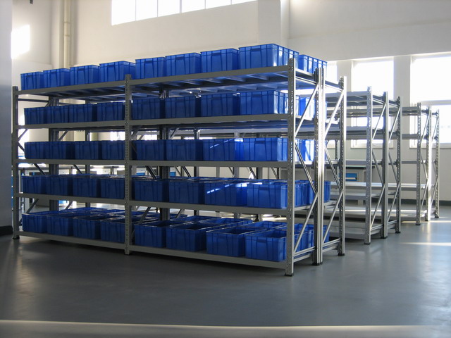 主要由柱片、鋼層板組成。立柱采用輥壓成型工藝,配合斜拉桿、水平拉桿連接而組成立柱片。根據(jù)需要搭配側(cè)梁式層板或橫梁式層板使用,層板可以以每50毫米為節(jié)距上下任意調(diào)整層高,貨架為插接組合式結(jié)構(gòu),穩(wěn)定性高,安裝拆卸方便。單元貨架每層載重量200kg-800kg之間,總載重一般不大于5000kg。單元貨架跨度通常不大于2.6m,深度不大于1.2m,高度一般在5m以內(nèi)。適用于承載中小件貨物。廣泛應用于商場、超市、企業(yè)倉庫及事業(yè)單位等各種行業(yè)。